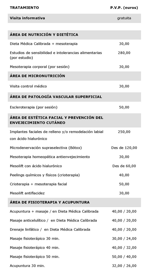 LISTADO DE PRECIOS POR TRATAMIENTO